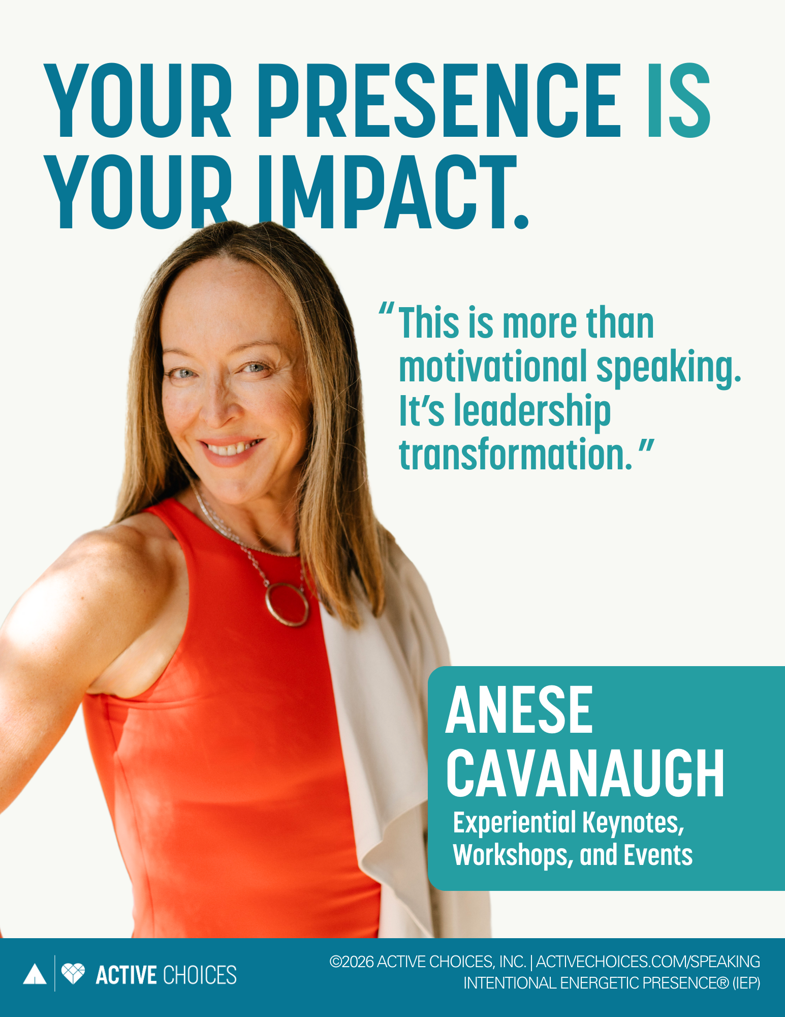 Anese Cavanaugh is a strategist, advisor, and keynote speaker who helps leaders and organizations strengthen impact, team health, and culture by focusing on what drives performance most: how people show up. She is the CEO of Active Choices, Inc., creator of the IEP Method® (Intentional Energetic Presence®) and the Positive Energy Workplace Initiative®, and a leading voice on intention, energy, and presence in leadership.