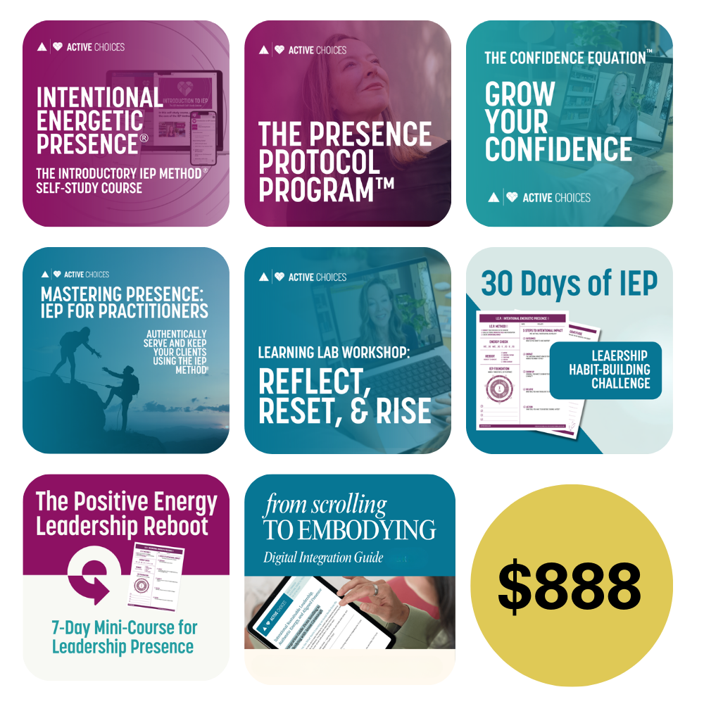 Interested in everything on this page? This bundle gives you full individual access to Active Choices’ core leadership, energy, and performance programs — designed to help you move beyond understanding leadership concepts into embodying sustainable, high-impact leadership in real life.